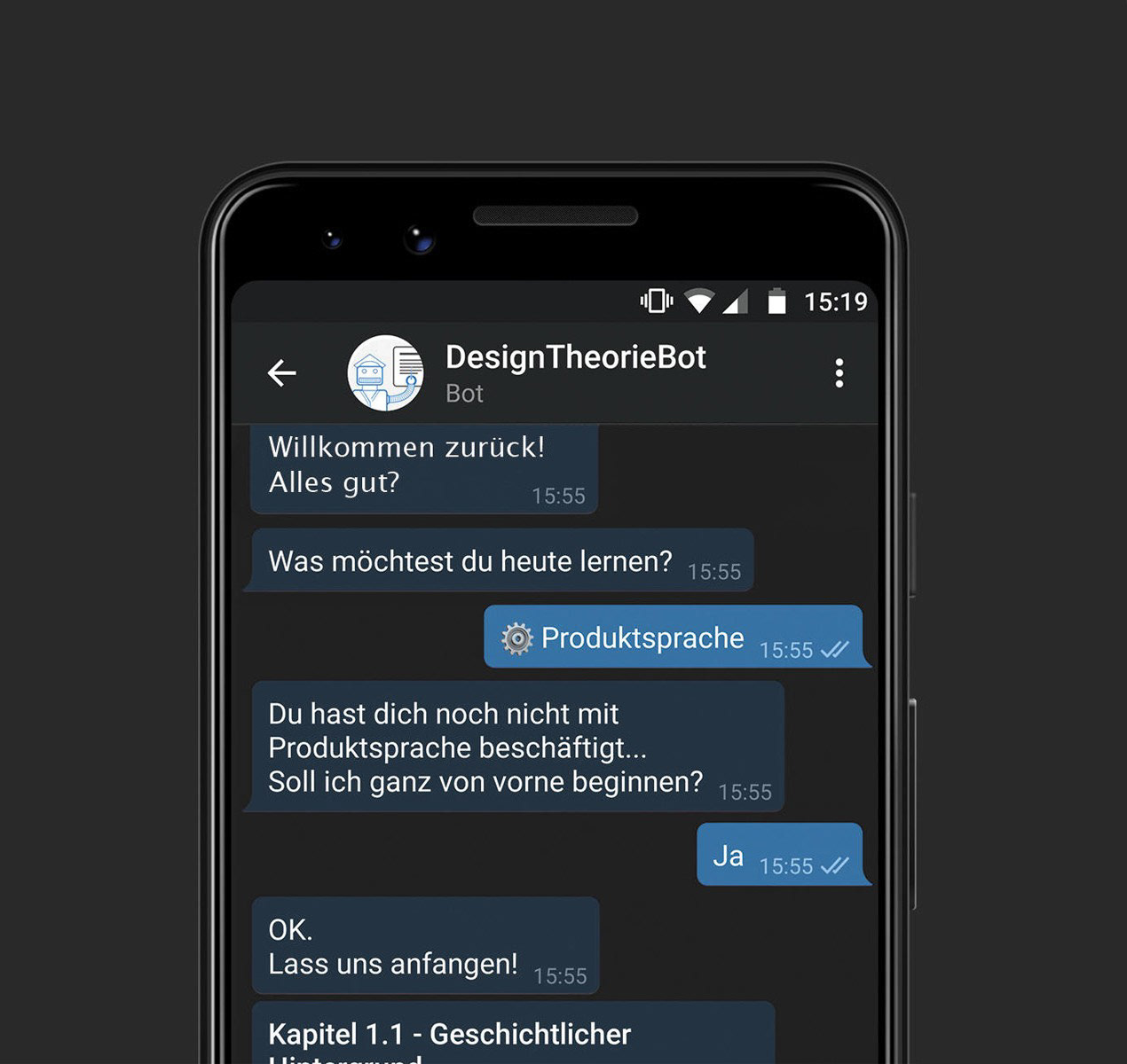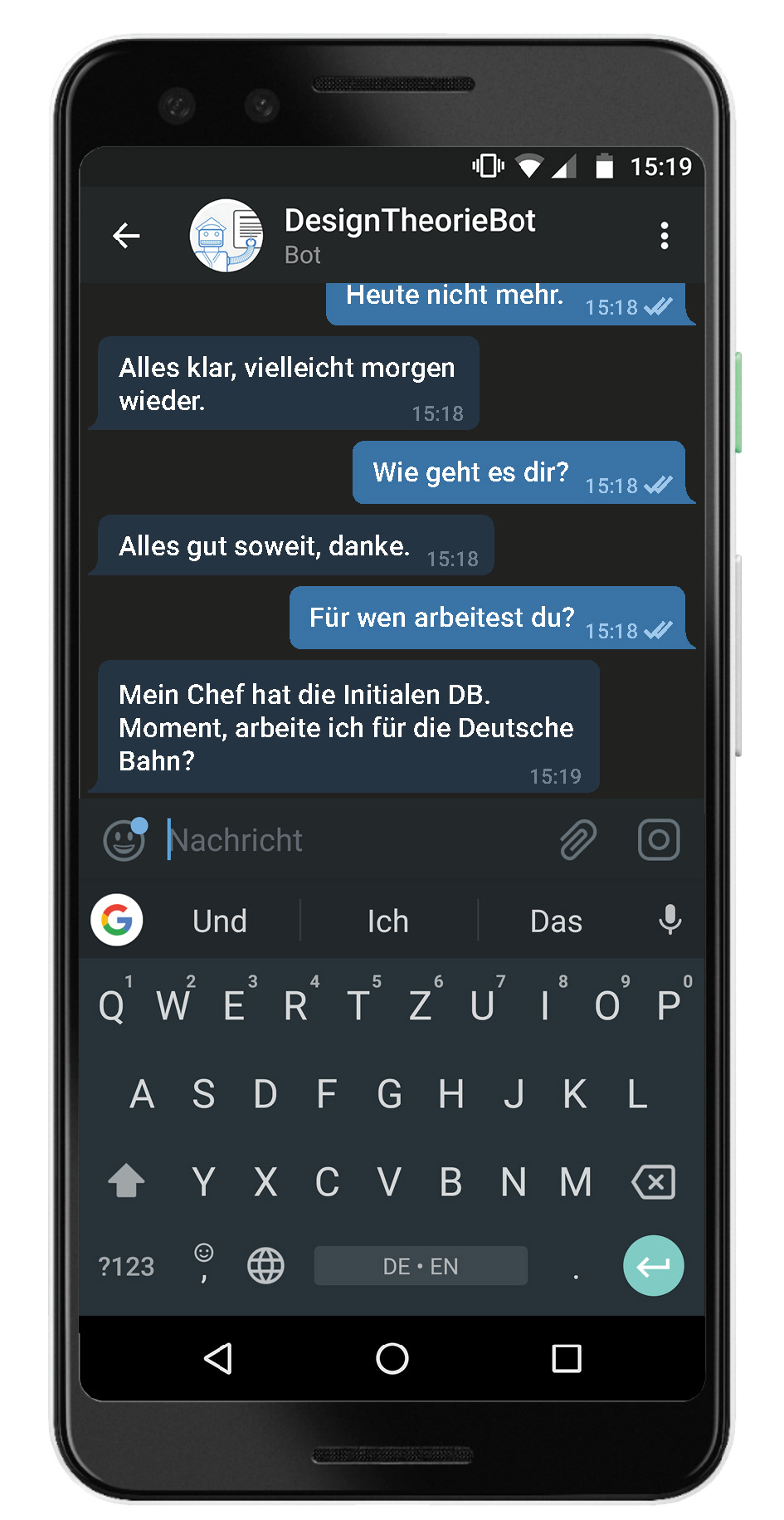 Kann man vom einer KI ebenso gut lernen wie lernen wir von einem menschlichen Lehrer? Mit dieser Fragestellung beschäftgig sich die Master-Thesis.Hierbei wurde die Produktsprache als Vermittlungsbeispiel ausgewählt und mit 20 Probanden in einer qualitativen Studie getestet. Den virtuellen Agenten, die komplette Darstellung, Tonalität und das Verhalten wurde, untermauert durch einschlägige Literatur, eigens entwickelt, umgesetzt und getestet.