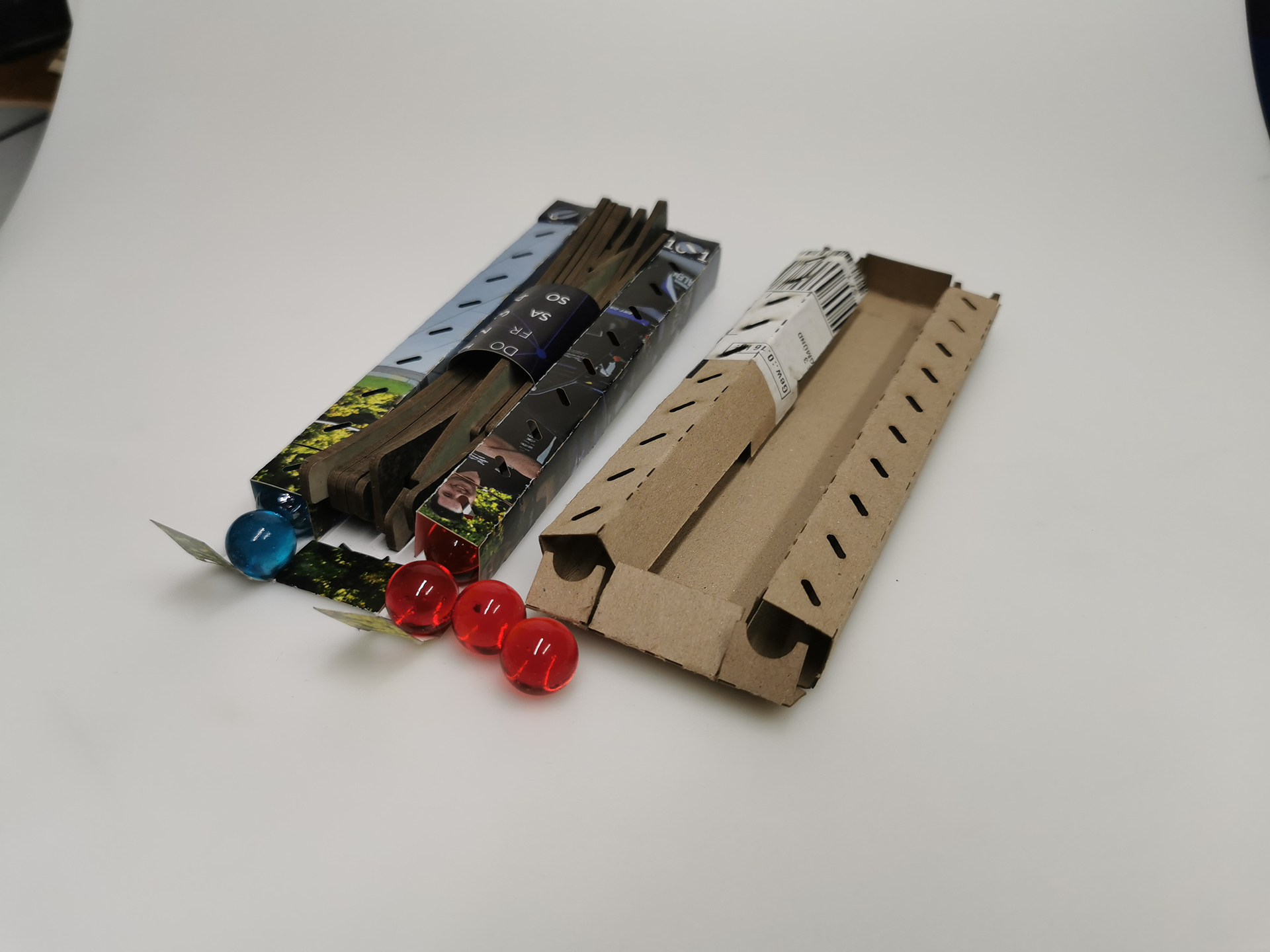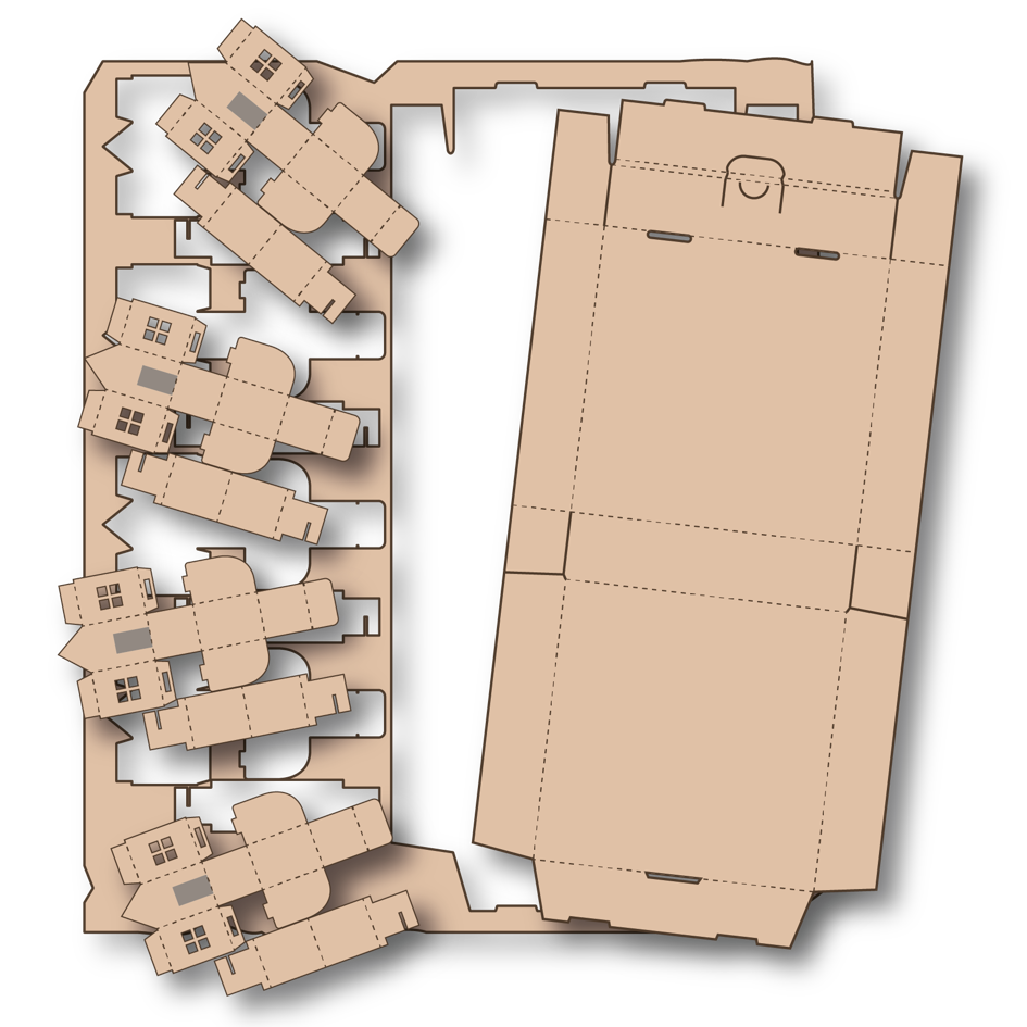 Die Herausforderung war mit sehr unterschiedlichen Ausgangsmaterialien konsistente Produkte herzustellen, mit der zusätzlichen Anforderung keinerlei Kleber oder andere zusätzliche Stoffe zu verwenden. Alles sollte mit durchschneiden, stanzen und zusammenstecken funktionieren.